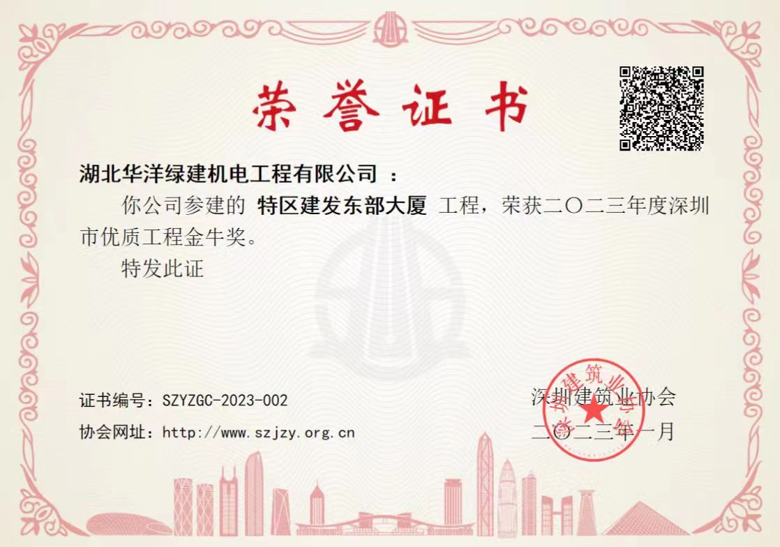 深圳特區(qū)建發(fā)東部大廈項目榮獲“深圳市優(yōu)質工程金牛獎”